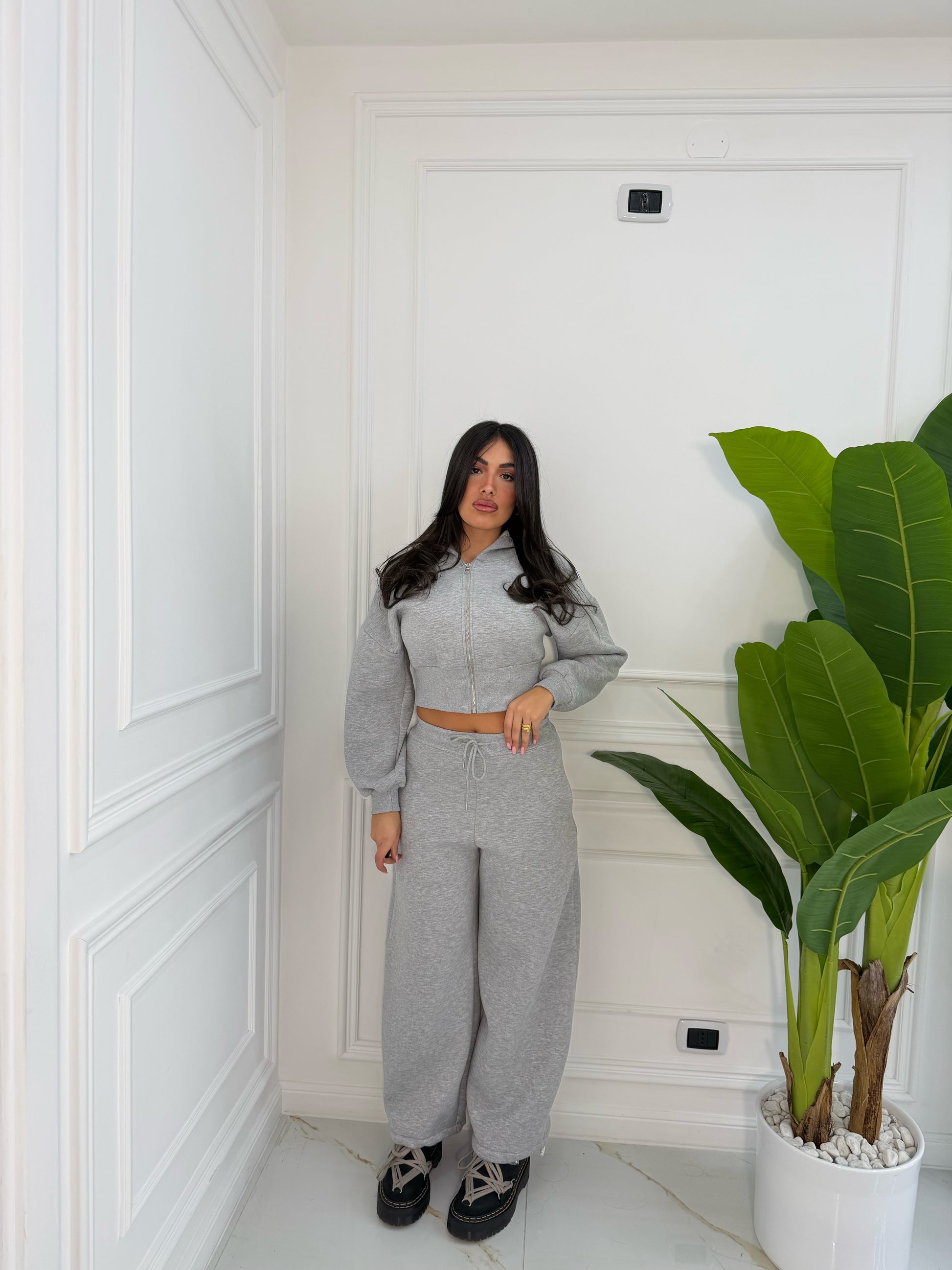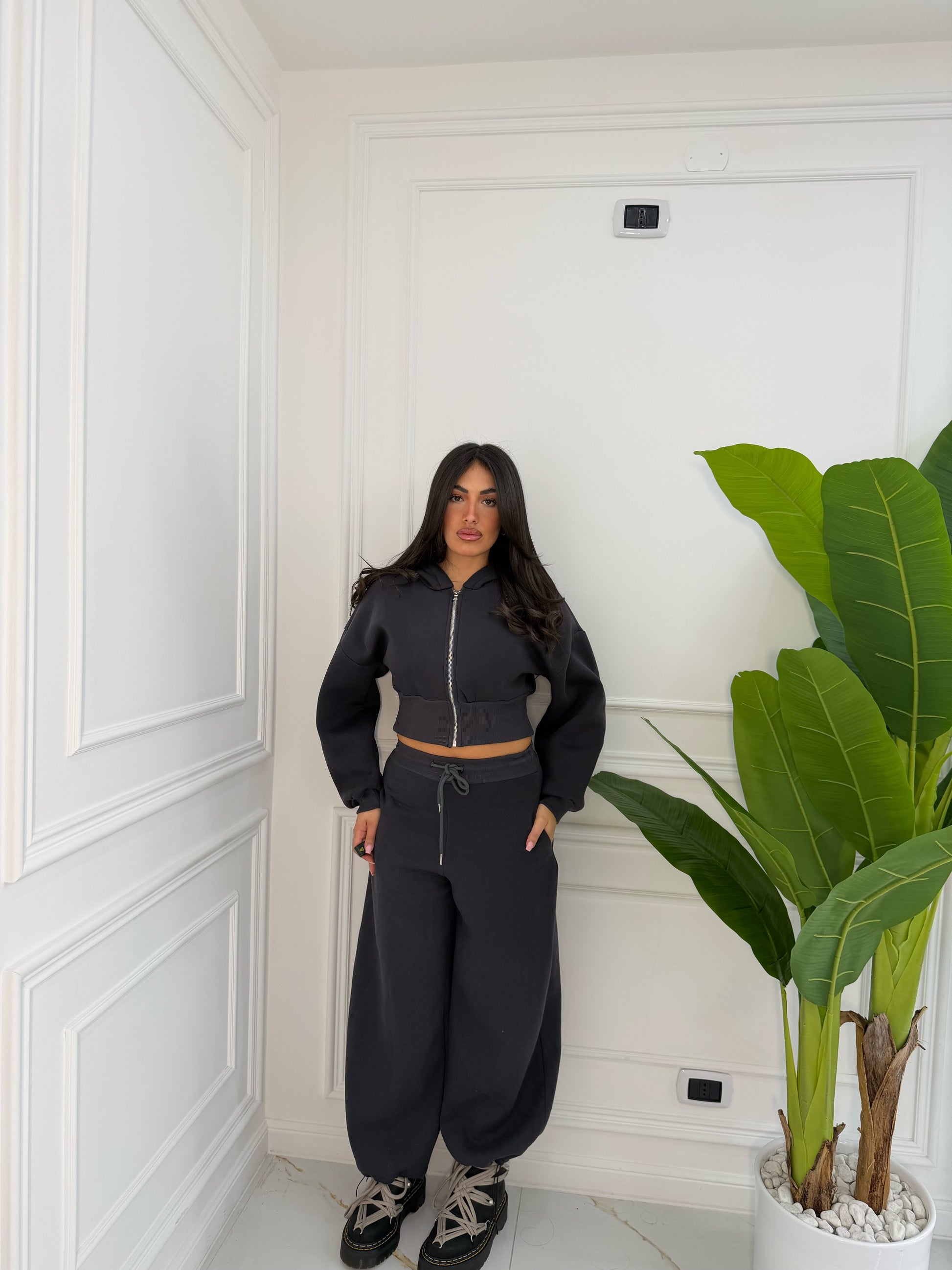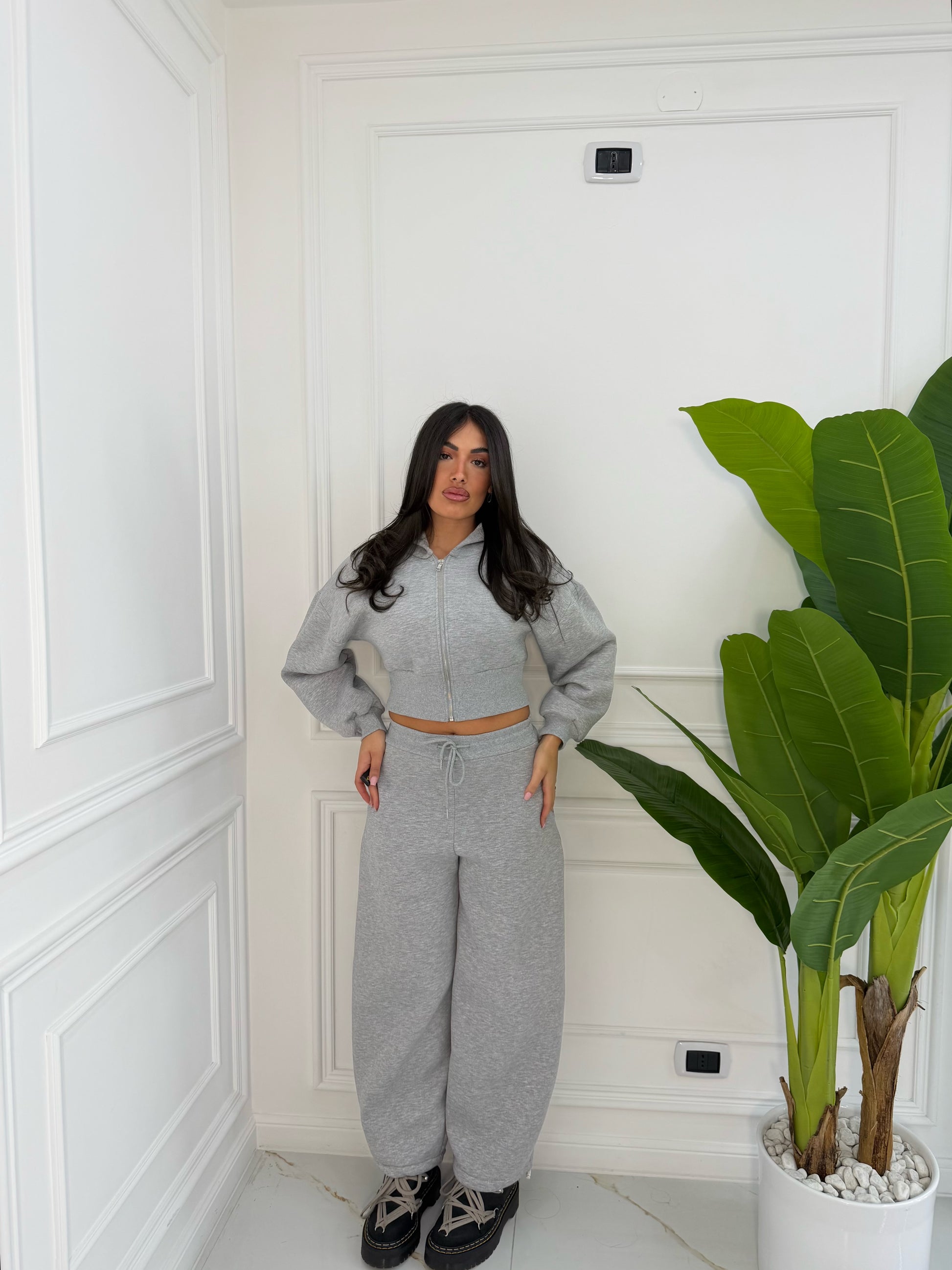 Taglia unica, felpa crop , pantalone con cuolisse sotto per stringere